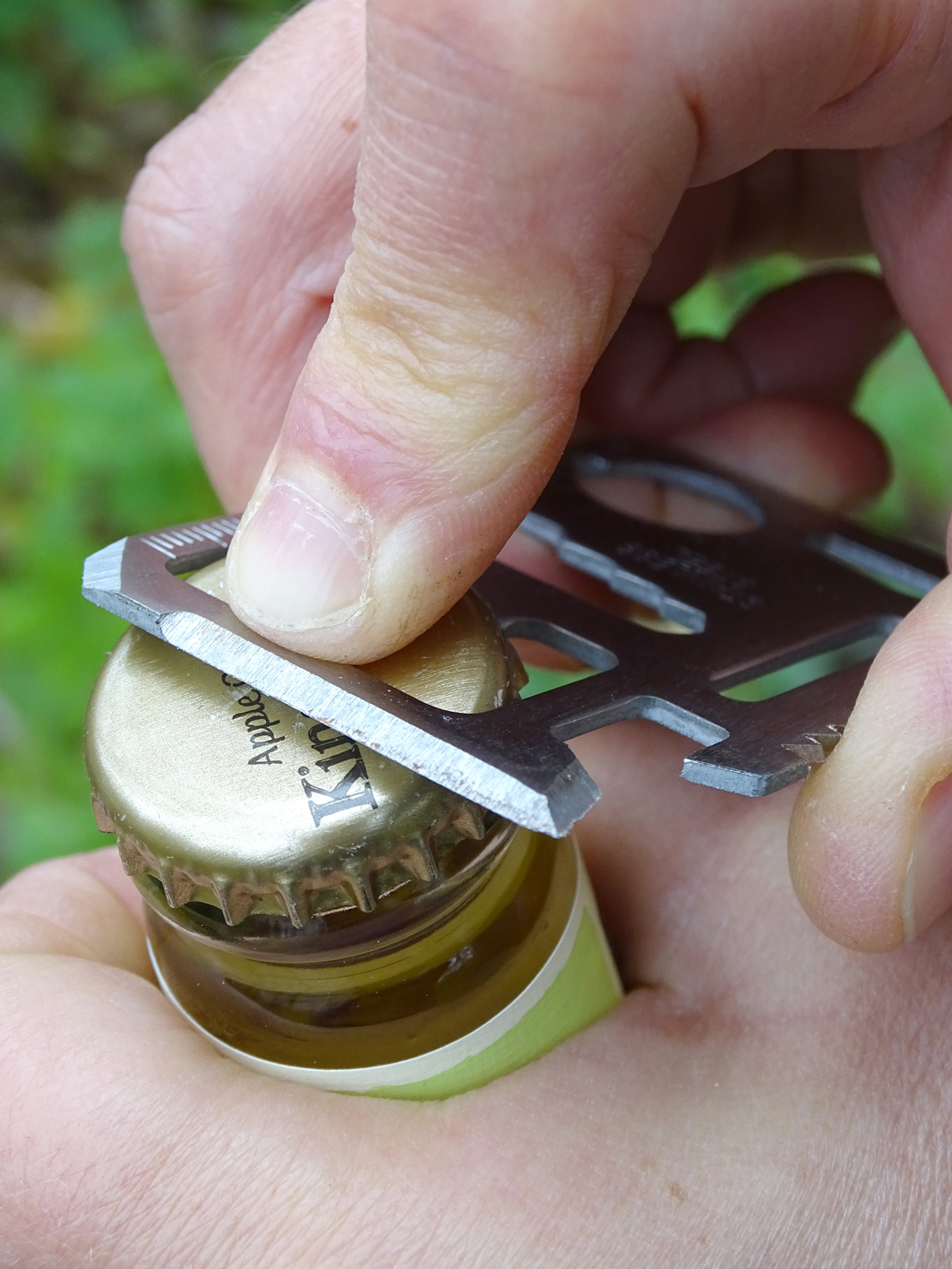 Tak tady byl zakopaný pes. Tato „cetka“ byla kalená a slušně vyrobená a nabroušená! Takže zde si dávejte pozor – KUPUJTE POUZE ZAKALENÉ PROVEDENÍ! Jinak jde fakt o bezcenej kousek nerezi. Ale v případě zakalené verze jde za ty doslova směšný peníze o opravdu fajn funkční kartičku. Integrovaný řezák (nůž) bez problémů řeže a nechá se i opakovaně dobrousit. Pilka na dřevo jakbysmet, jen ji znovu již asi nedobrousíte. I otevíráky lahví a konzerv fungují bezvadně!
