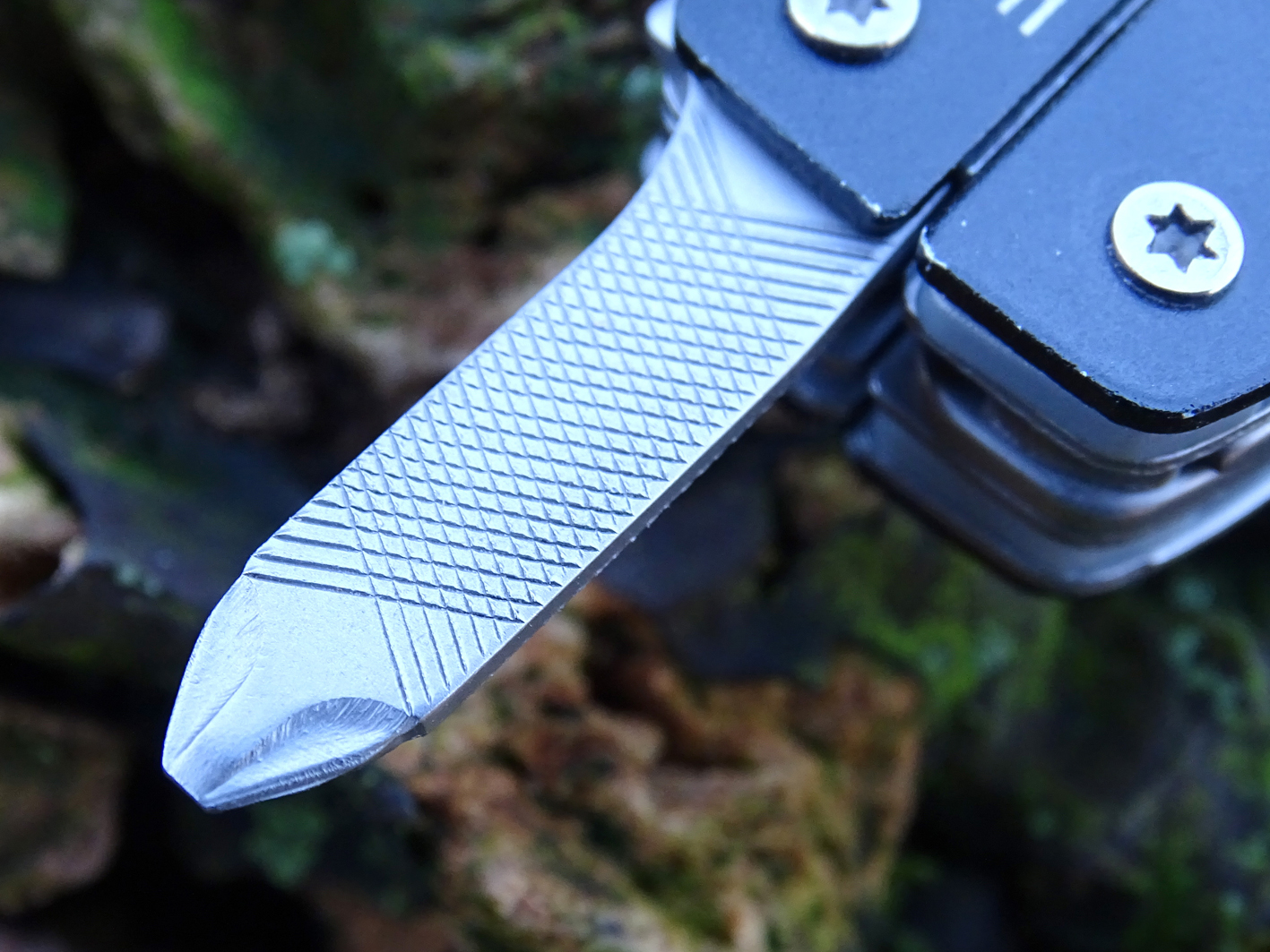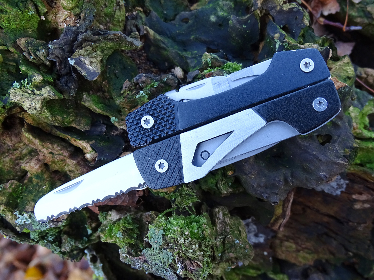 Zbytek výbavy ukrytý ve sklopných rukojetích je u obou nástrůjků zcela shodný. Nalezneme v nich jednak hladké a zubaté nožové ostří – každý jako samostatný nástroj, křížový šroubovák, pilník, malý a velký plochý šroubovák a otevírák korunkových uzávěrů. Všechny nástroje jsou vyrobeny z kvalitní nerezové oceli a nemají pojistku proti nechtěnému zavření. Hladké ostří použijete jako běžný nůž, zubaté pak na přeřezání odolných a houževnatějších materiálů.