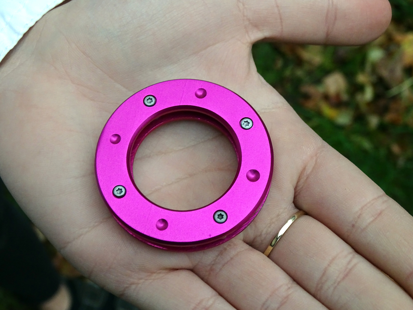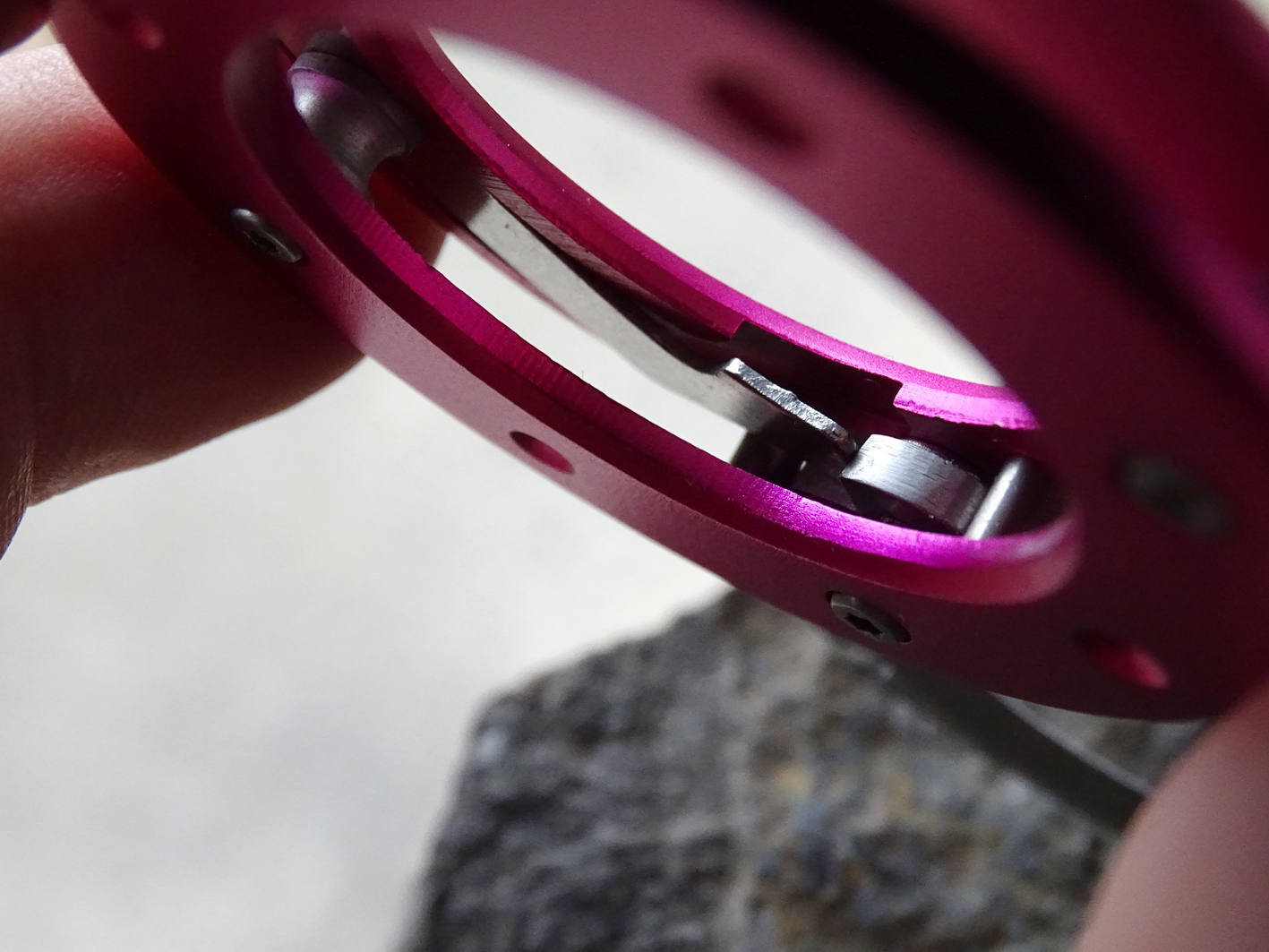 Jde o zavírací nůž s ostrou čepelí vyrobenou z oceli AUS-8. Společnost vyrábí nožů tohoto typu hnedněkolik variant, které se od sebe liší zejména použitým materiálem na rukojeť nože a jehopovrchovou úpravou. Na našem trhu jsem sehnal provedení s duralovým tělem eloxovaným dozajímavého odstínu sytě fialkovo-růžové barvy. Jde již o inovované provedení, kde je poněkud lépekonstrukčně vyřešeno nechtěné samovolné otevření nože.
