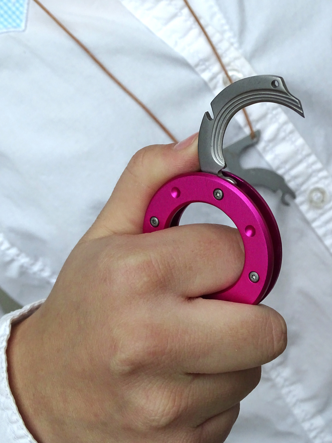 Duralové tělo je maximálněminimalistické a díky použitému materiálu je tento zavírák také lehoučký. K pohotovému otevřenínože slouží jednoduchá páka, která po uchopení duralového těla a pohybu dolů do strany vytáhnečepel a nůž je tak připraven k použití. Asi nepůjde o nůž pro chlapy – spíše to bude pěkný dárek odchlapa pro jeho milovanou. Tímto může dostat do rukou, alespoň jak se říká malou „berličku“ prosvoji ochranu.