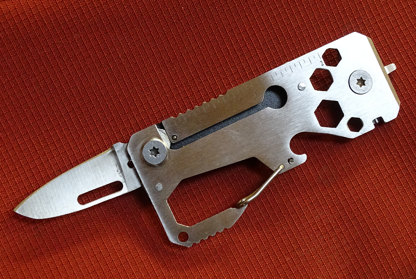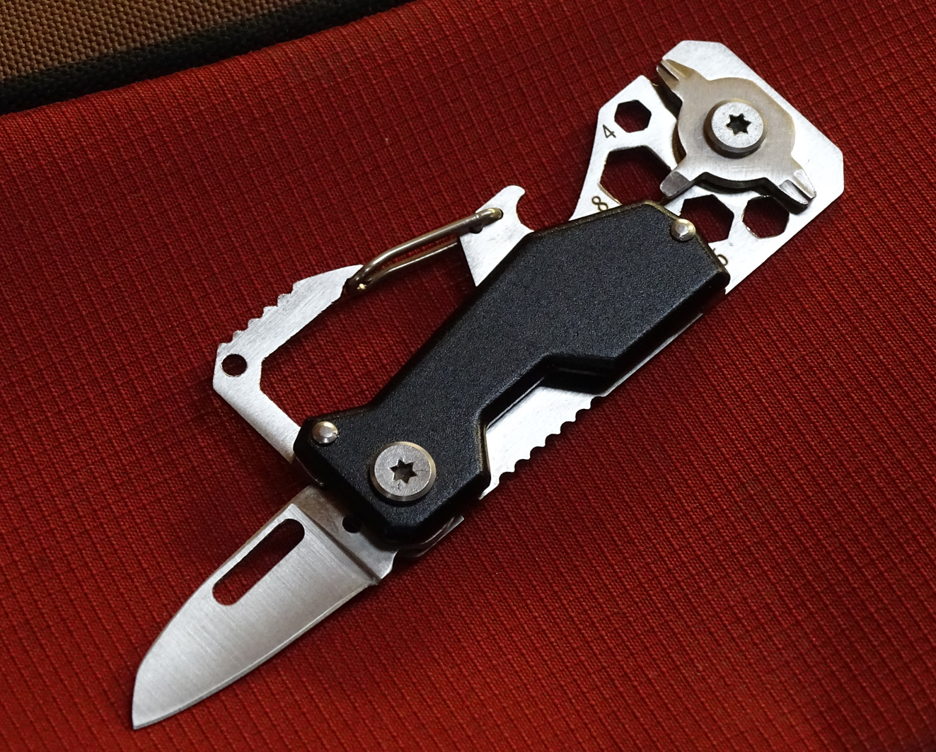 Tato maličkost výrazně usnadňuje držení a nástrůjku dodává jakýsi punc vyšší kvality. Nástrůjek je celý vyroben z nerezavějící oceli a čepel pak z oceli 420. Čepel je také kalena na tvrdost 54HRC. Multitool je dále vybaven dvěma velikostmi křížových šroubováků a jedním malým plochým. Ty jsou uloženy na otočné hlavě v zadní části nástroje. Zde je také situováno pět klíčů velikostí 3, 4, 5, 6 a 8.