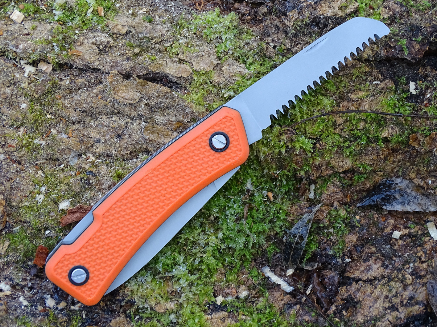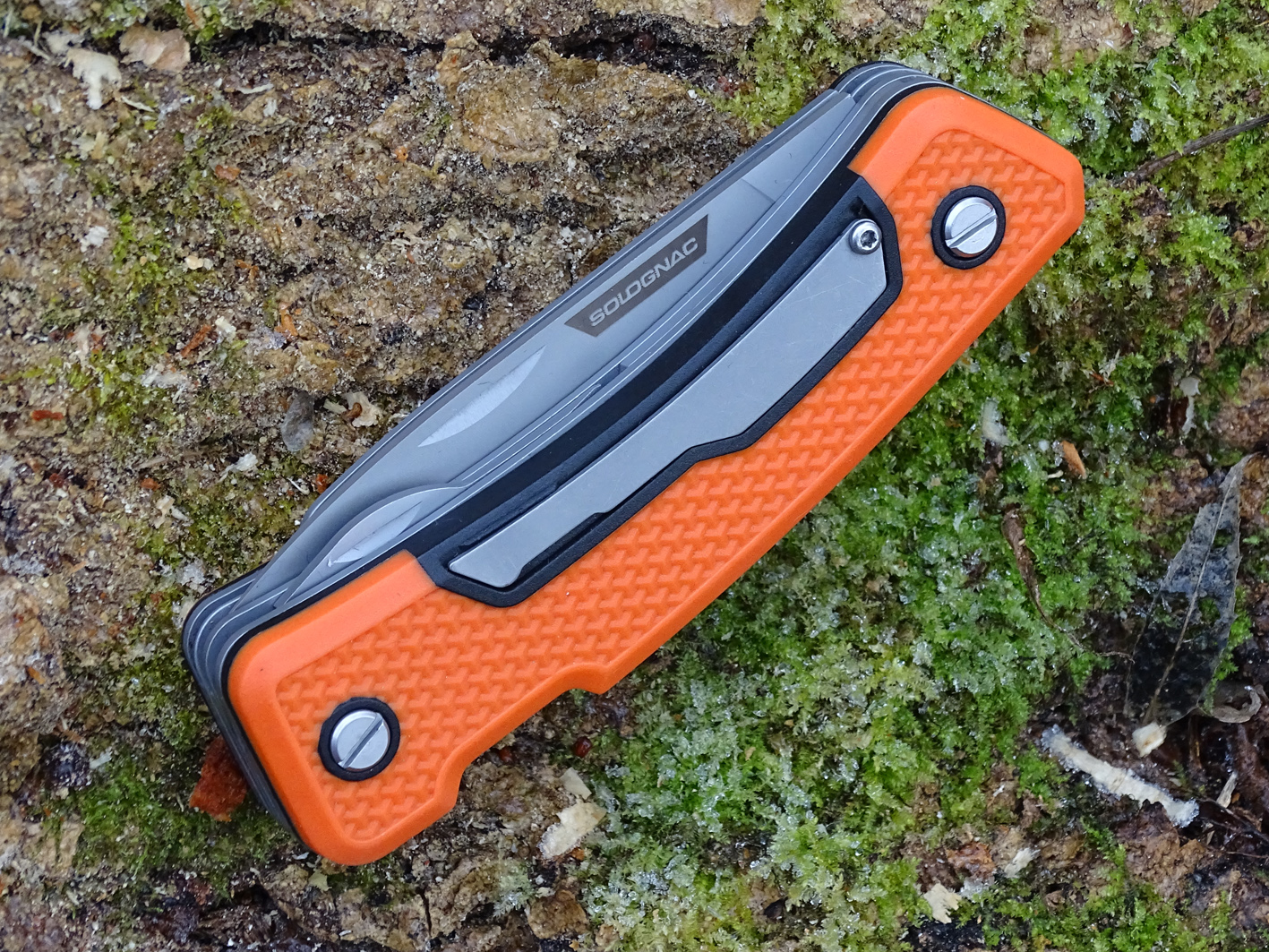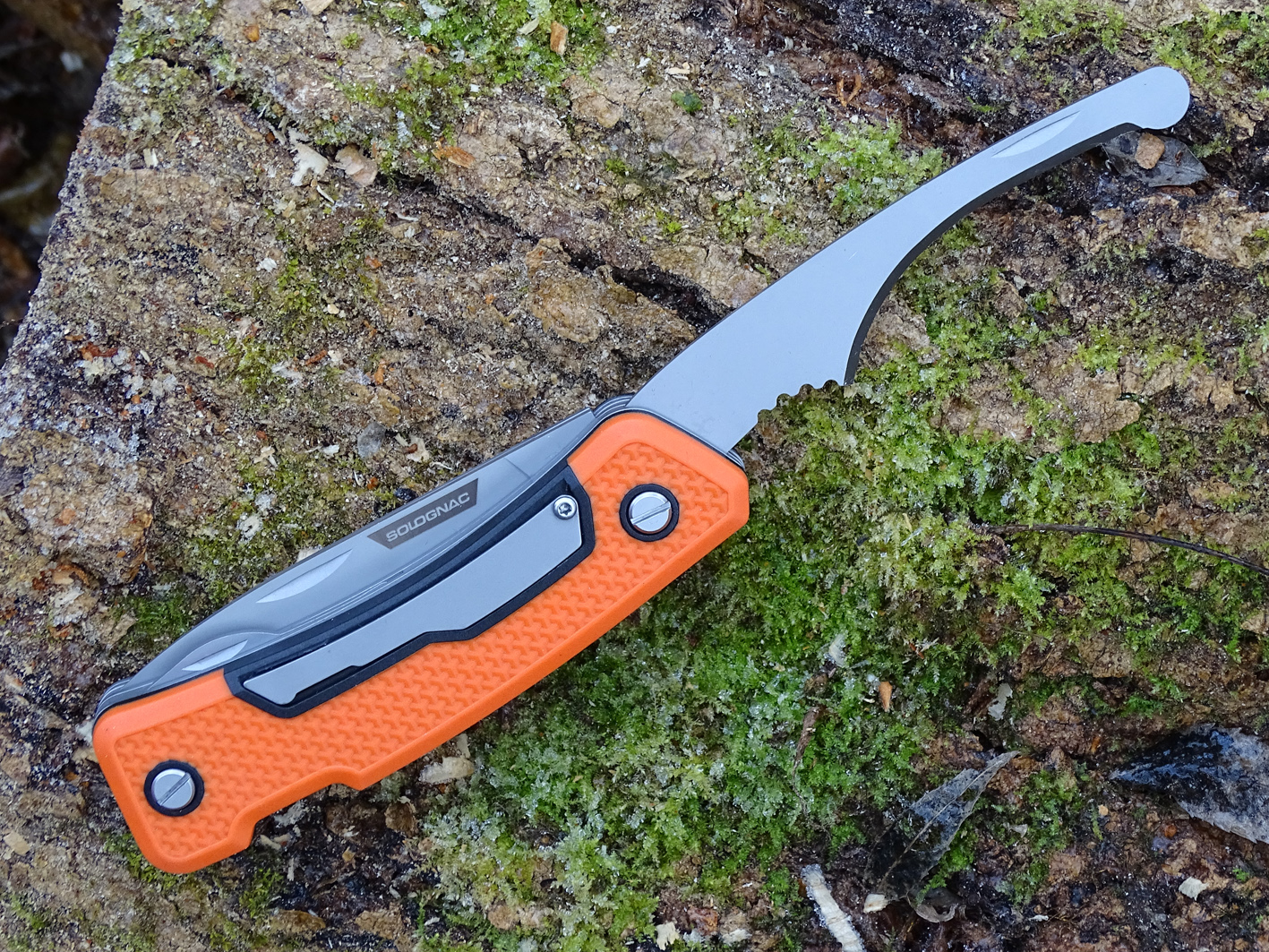 Tenhle kusanec železa obsahuje solidní hlavní čepel o délce ostří 87 mm, masivní pilku o délce 65 mm, páráček zvěře s délkou ostří 60 mm, kombinovanou čepel s otevírákem korunkových uzávěrů, otevírákem konzerv a šroubovákem a pak trochu raritní nástroj na odstraňování klíšťat, který je ukryt netradičně v boku nože pod ocelovou odklápěcí clonou.