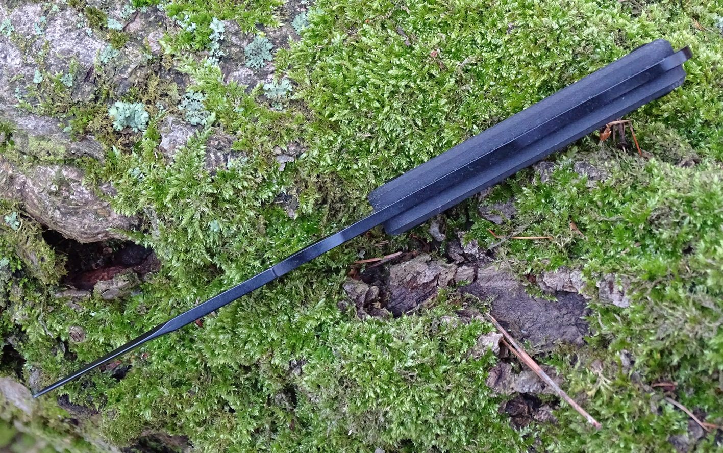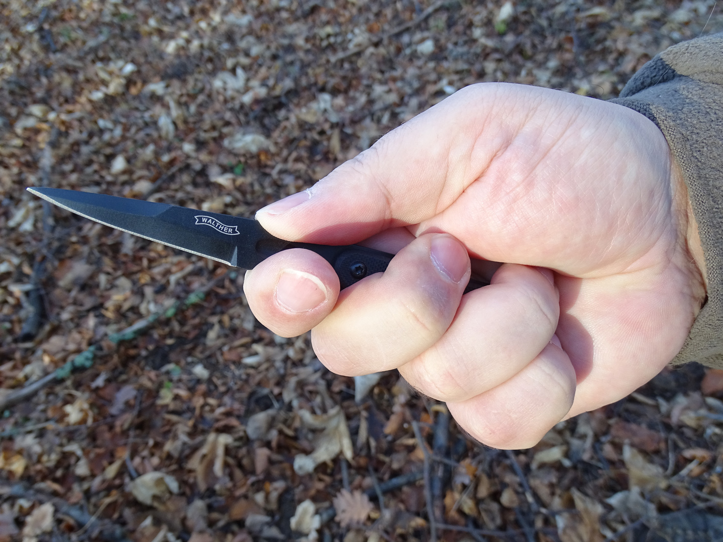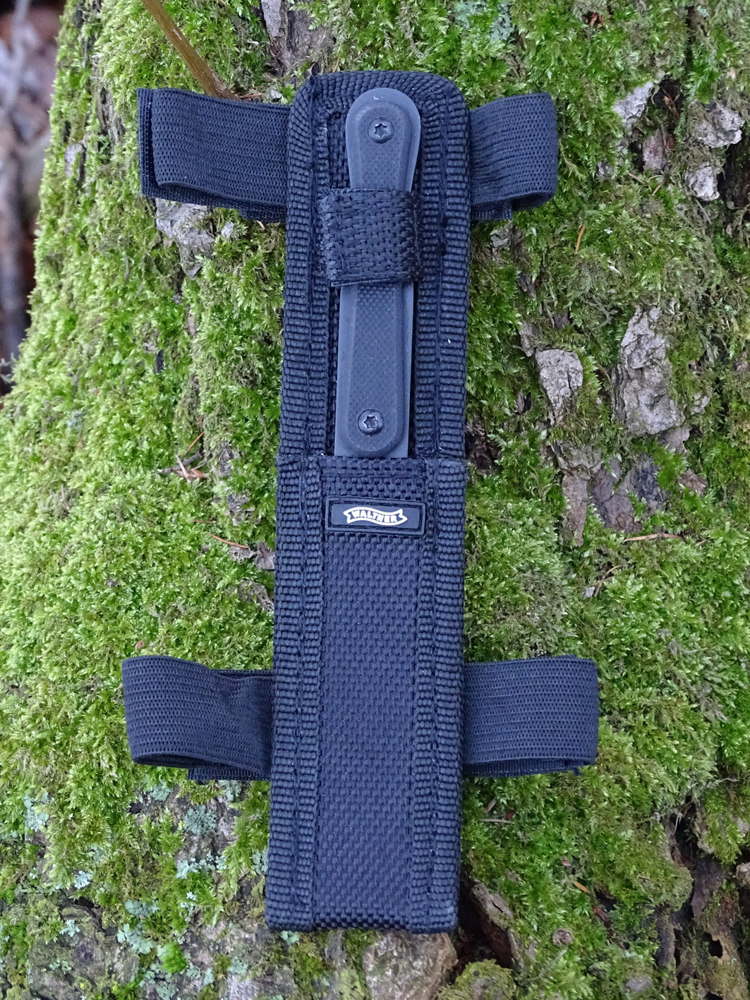 Ty jednak zajišťují slušný úchop i takto malého nože a také jednoznačně oddělují rukojeť od ostří. To se hodí například ve tmě. Rukojeť nože je řešena oboustranným doplněním polymerových dílů (materiál G10), které zvyšují kvalitu úchopu tohoto drobného nástroje. Nůž je dodáván s pouzdrem ze syntetických materiálů, které lze díky dvojici pružných širokých popruhů uchytit na předloktí ruky a zakrýt rukávem košile, mikiny nebo bundy.