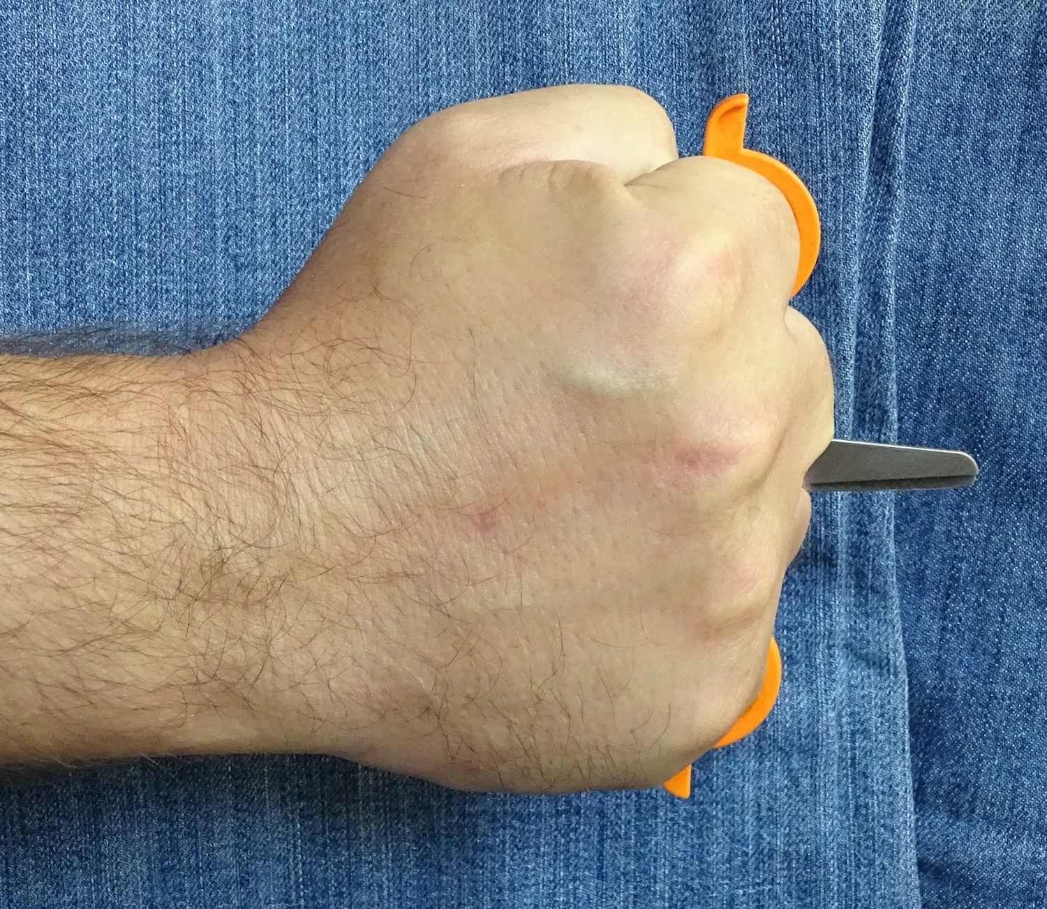 Ocelové čepele trčí z vaší pěsti a dokáží tak výrazným způsobem zvýšit razanci a bolestivost vašich úderů. Takto vytvořený improvizovaný boxer sedí v ruce jako by pro tento účel byl snad přímo vytvořen. A koho by napadlo, když u vás najde malé skládací nůžky, na první pohled vypadající jako dětská hračka, že se během okamžiku dokáží změnit na účinný sebeobranný nástroj.