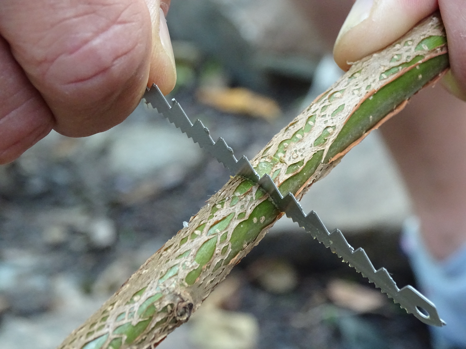 Ta dodává vylomeným nástrojům patřičnou kvalitu jako je houževnatost a dostatečná mechanická odolnost. Prodejci často zřejmě z neznalosti uvádějí, že jde o ocel kalenou, ale není to pravda! Musíme nástroje z karty vylomit, což by po zakalení nebylo možné! Navíc se nekalená ocel velmi dobře například dobrousí běžným vhodným kamenem. A na nouzové využití je tvrdost nástrojů plně dostatečná.
