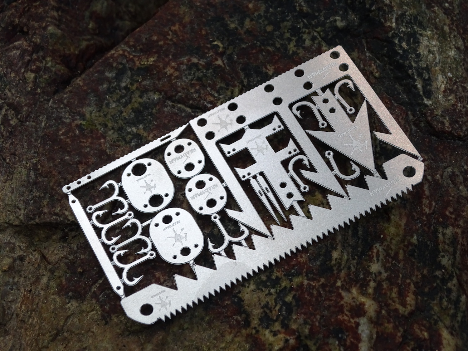 Pro tuto kartu pak nemluví pouze její jedinečnost, ale také ta skutečnost, že za jejím návrhem stojí chlapi, kteří ví co dělají. Jsou to bývalí příslušníci elitních zelených baretů. A čím, že je tato karta na přežití tak ojedinělá? Jde o to, že její konstrukce je založena na principu vylamování jednotlivých nástrojů, které jsou do těla karty integrovány. Čili potřebujete například hrot k šípu, anebo háček na lov ryb – pak si je prostě jednoduše vylomíte z karty.