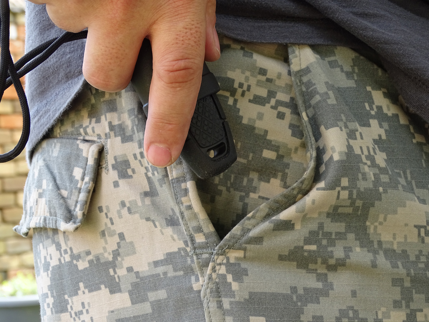 Nůž je již z výroby také velmi dobře nabroušen. Pouzdro je plastové se dvěma odtokovými otvory ve spodní části. Pozitivem je také to, že nůž do pouzdra můžete zasunovat oboustranně. Nemusíte tedy přemýšlet, jak ho tam zasunout. Nůž v pouzdře drží tak akorát, aby běžně nevypadával a současně aby šel dobře vyndat. V pouzdře můžete nůž nosit v kapse i díky tomu, jak je malý, anebo třeba v batohu.