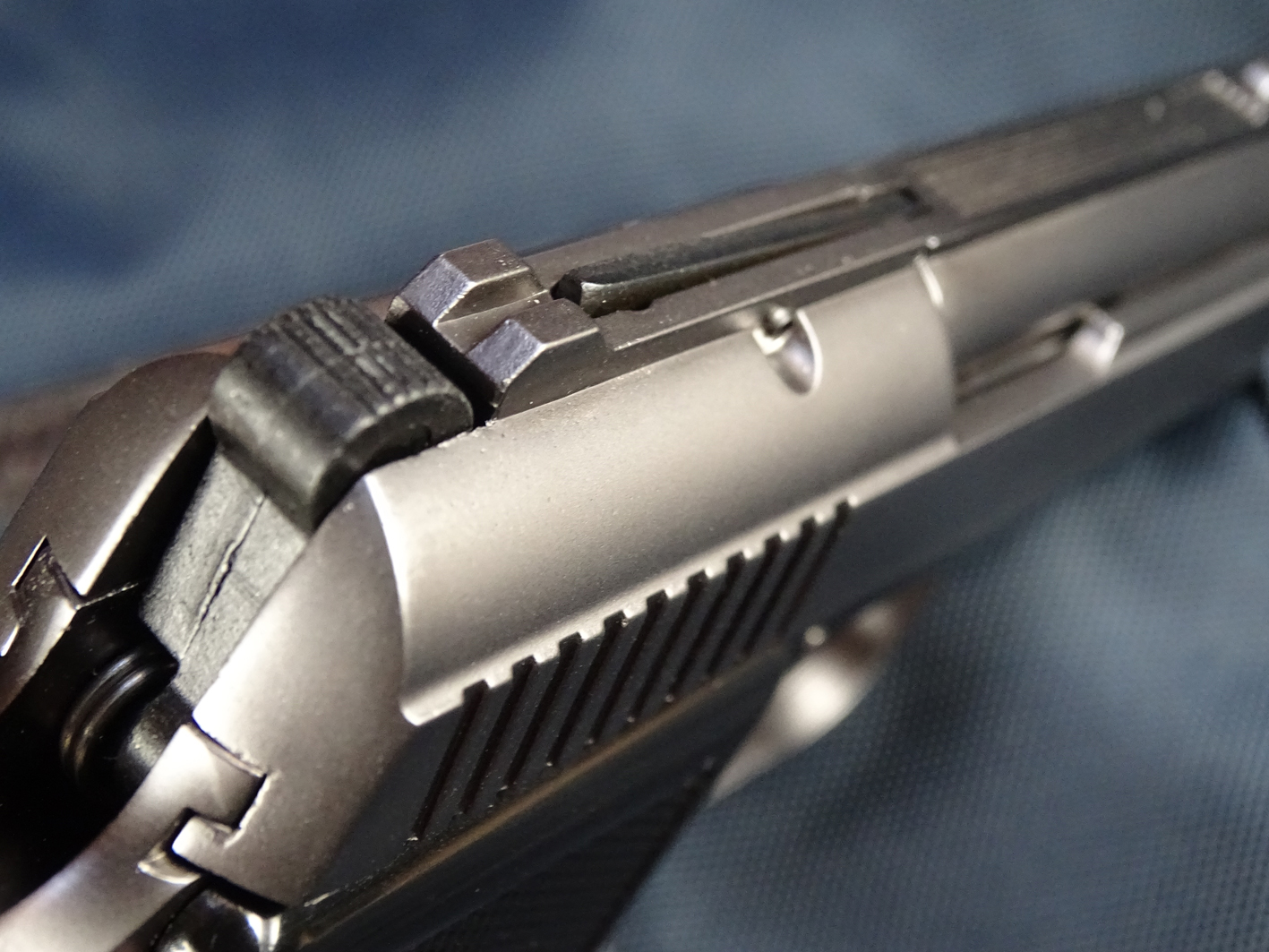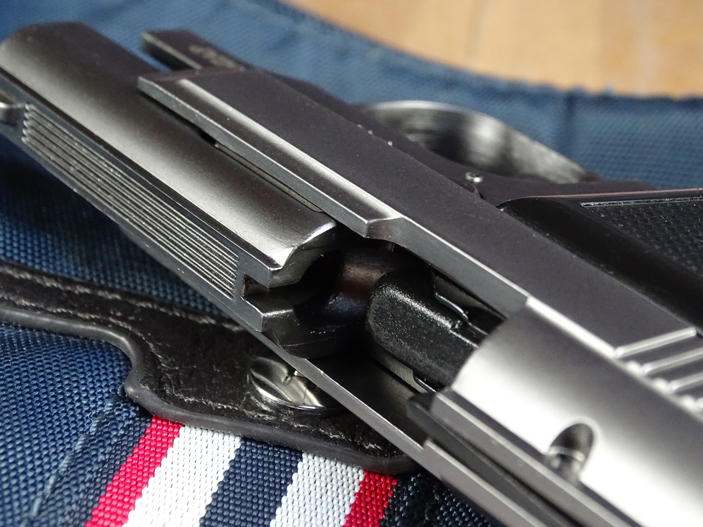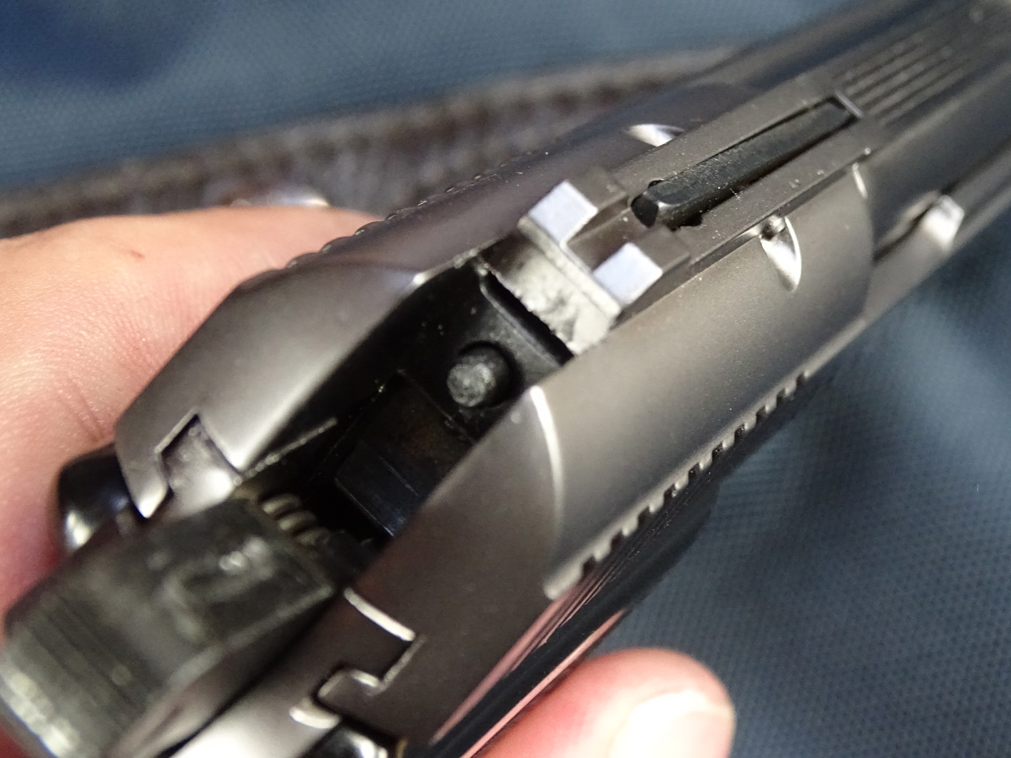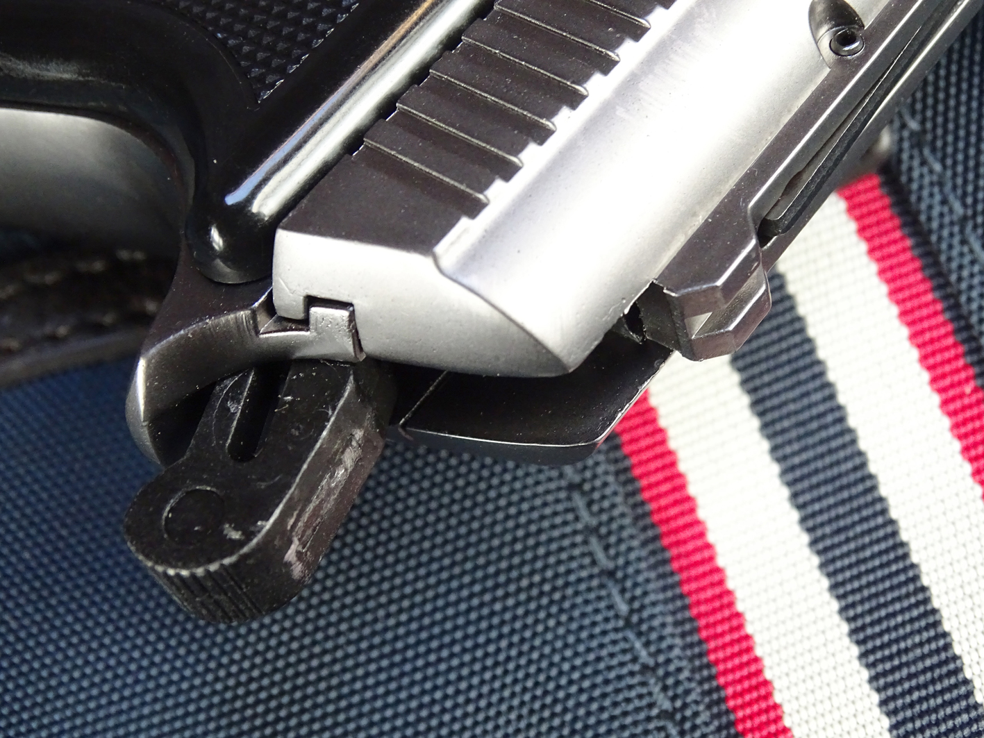 Pistolka je vybavena také jednoduchou pojistkou proti nežádoucímu výstřelu a výstražníkem upozorňujícím na náboj v komoře. Kapacita zásobníku je šest nábojů, i když výrobce udává sedm. Sedmý kousek tam člověk již prostě nedostane. Navíc vřele doporučuji zásobník nabíjet pouze pěti náboji tak, aby nedocházelo ke zbytečnému namáhání zasobníkové pružiny.